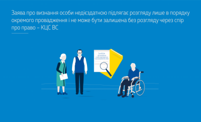 У своїх рішеннях ВС вказував, що від вирішення питання щодо дієздатності громадянина залежить можливість його участі у вирішенні інших цивільних справ. Тому заяви про визнання громадянина недієздатним підлягають розгляду окремо від інших вимог у порядку, передбаченому статтями ЦПК України. Одночасно зі спором про право цивільне питання про недієздатність громадянина суд може вирішувати лише в тому разі, коли спір виник після смерті цього громадянина.