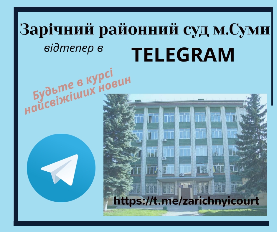 Слідкувати за діяльністю суду стало ще легше. У Зарічного районного суду м. Суми з’явився власний канал в Telegram.
