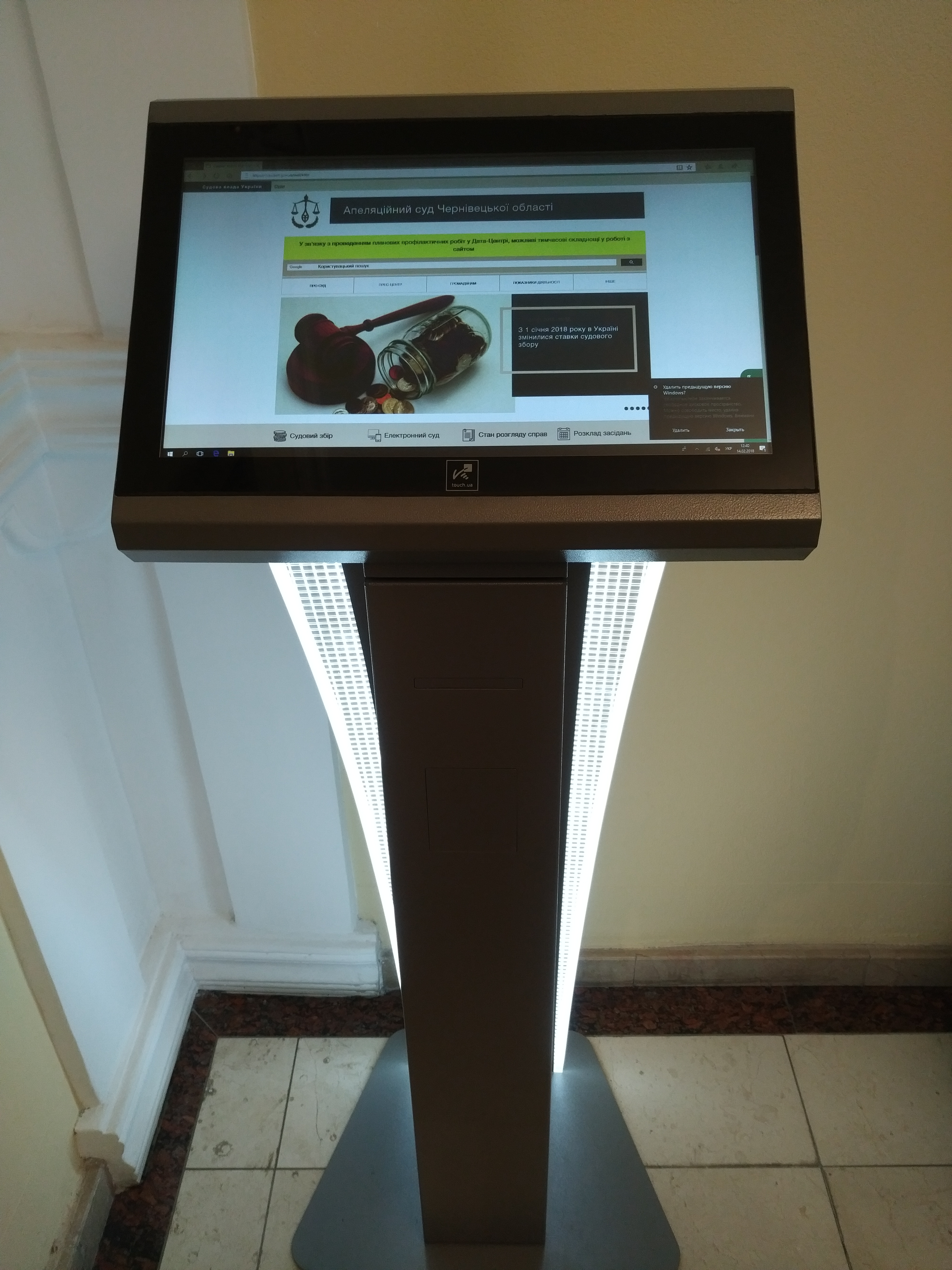 Для кращого доступу громадян до інформації про діяльність судової влади у приміщенні апеляційного суду Чернівецької області встановлено «інформаційні кіоски». Перший знаходиться на другому поверсі цивільної палати суду (за адресою Центральна площа, 9), другий – на першому поверсі кримінальної палати суду (вул. Емінеску,4 ).