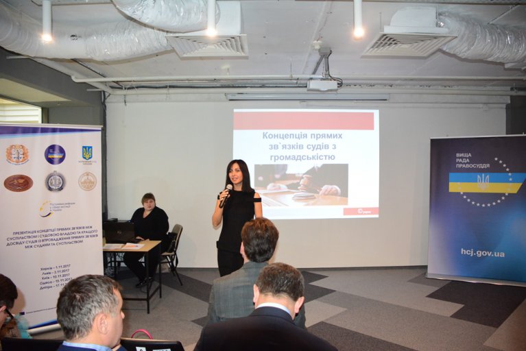 Протягом листопада цього року у п'яти містах України: Харкові, Львові, Києві, Одесі та Дніпрі Вищою радою правосуддя, Комунікаційним комітетом системи правосуддя за підтримки Проекту Європейського Союзу «Підтримка реформ у сфері юстиції в Україні» проведено тренінги для голів судів на тему: ««Презентація Концепції прямих зв’язків між суспільством і судовою владою та кращого досвіду судів із впровадження прямих зв’язків між судами та суспільством».